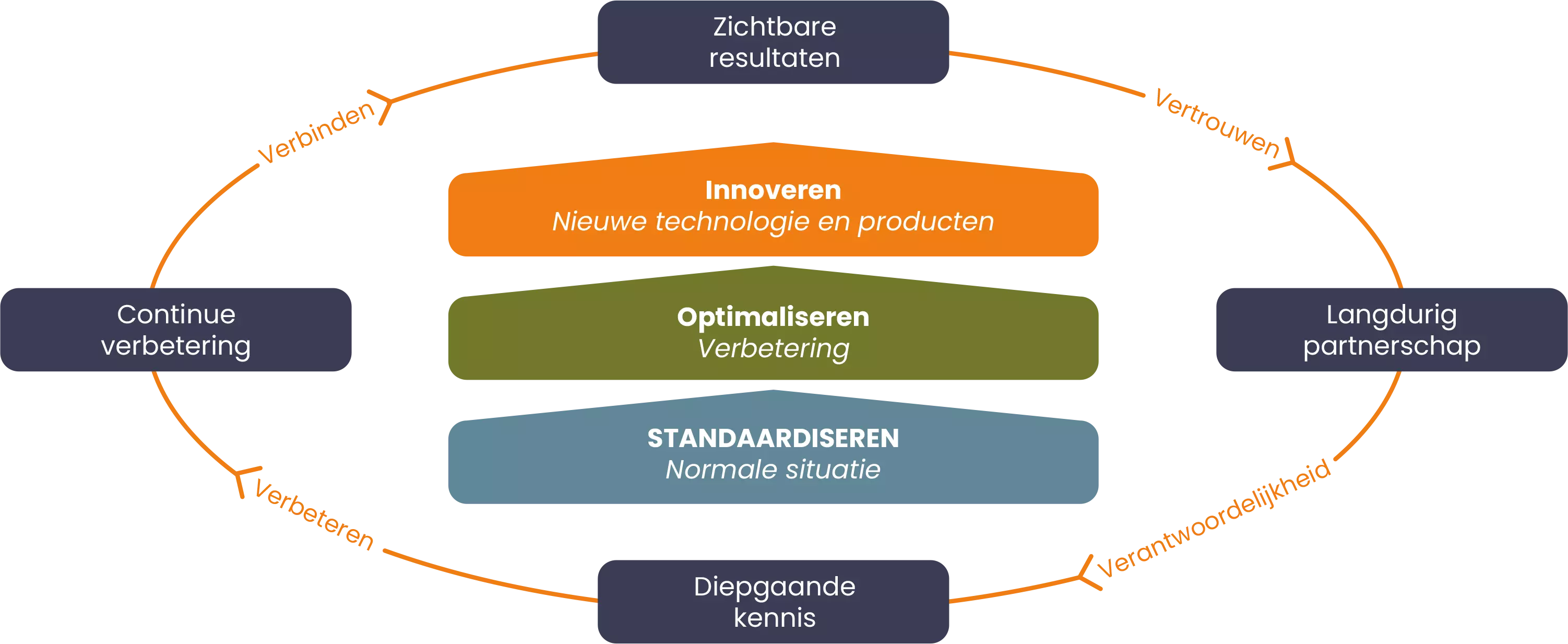 Onze cruciale succesfactor? Onze langdurige partnerrelaties. We plaatsen het belang van onze partners – die we door en door kennen - aantoonbaar voorop, vaak met een dieper inzicht dan zijzelf. Door middel van onze strategie van continue verbetering overtreffen we vervolgens consequent verwachtingen. We gaan voor gedeeld succes, niet op de korte maar op de lange termijn. We zijn gecommitteerd, ‘for the long run’.